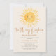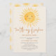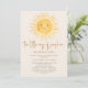 Are you planning a sun-themed twin's baby shower? This boho sunshine baby shower invitation features the text "Two little rays of sunshine are almost here!" with a cute watercolor smiling yellow sun on a soft cream background. The back is decorated with a sun pattern. Perfect for twin boys, girls, or one of each baby shower. Easily customisable. Original Watercolor © Michele Davies.
