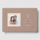 This elegant wedding Guest Book features your personal photo framed in ivory white and set against an optional rose brown background, creating a calm, sun-washed aesthetic. This design blends modern simplicity with organic beauty, making it ideal for garden, coastal, countryside, and contemporary weddings. The clean layout highlights the couple’s photo, names and wedding date while maintaining an airy, sophisticated feel. Search ID1283 to see other pieces in this coordinated wedding set.