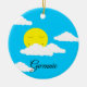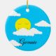 Sun with Puffy Clouds: Turquoise Ceramic Tree Decoration