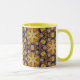 Radiate warmth and joy with this sunburst-inspired mosaic mug. The design features star-shaped florals in sunny yellows and oranges, nestled among leafy blue motifs and geometric tile shapes—all set against a rich cobalt blue backdrop. The crisp white exterior frame contrasts with a sleek black handle and interior, giving the mug a contemporary finish. It's perfect for lovers of colour, pattern, and Mediterranean or folk tile art.