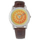 Embrace the warmth of style with our Classic Brown Leather Strap Watch, featuring a radiant sunburst design. The vibrant orange and yellow sunshine hues burst from the centre, creating a dynamic and uplifting look. The classic brown leather strap complements the vivid design, offering both comfort and timeless elegance. Perfect for those who love to add a touch of brightness to their day, this watch seamlessly blends classic craftsmanship with a cheerful and modern aesthetic. Whether you're dressing up for an occasion or adding flair to your everyday attire, this watch is sure to draw attention and admiration. Brighten up your accessory collection with this stunning and vibrant timepiece.