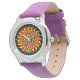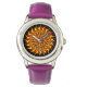 A very bright and colourful design. A stylised sun with a spiral centre and in flaming colours fills the entire watch face. No numbers are on the face. Due to the design of the hands, the Stainless Steel version might be a bit more difficult to read than the other styles.