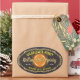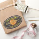 Wildflower honey jar label, or any type of honey, featuring a sunburst icon at the centre of a gold frame border, and bright yellow text. Script lettering for the business or beekeeper name in a complimentary, light amber colour. Enter the net weight of the honey, or change "Net Wt." to add the metric weight in grams, with your address or contact information in round text. Change the jet black background colour with a different "Design Theme". Get a customised design when you contact us with the link on our store. © honeyjarlabels