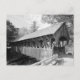 A vintage photograph of Sunday River Bridge spanning Sunday River near Newry, Maine. Sunday River Bridge is a very well executed speciment of the bridge truss designed in the 1840s by Peter Paddleford of Littleton, New Hampshire. This truss became the dominant style in covered bridge construction throughout much of New England, but has received little attention from historians, perhaps because it was never patented. The bridge is also noteable as an example of sympathetic restoration.