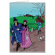 From an original line art illustration in an antique 1904 book publication depicting a charming newlywed Victorian couple from the gilded age strolling arm in arm along a dirt road, in their old fashioned Sunday best, past a beautiful meadow and farm house as their dog and a delivery boy, with a heavy trunk, hurry fast behind. This lovely vintage drawing, lovingly restored & colourized exclusively for Heirloom Salon, is a lovely, whimsical gift that brings to mind the good old days or that time when the blush of and enduring love and romance between life long sweet hearts was fresh and new.