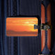A stunning photographic image of the orange sky as the sun just sinks behind the distant mountains