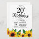 Sunflower 20th Birthday Invitation. Floral Flowers and White Background. Country Vintage Retro. Women Birthday. 12th 13th 15th 16th 18th 20th 21st 30th 40th 50th 60th 70th 80th 90th 100th, any ages. Printable Digital. For further customisation, please click the "Customise it" button and use our design tool to modify this template.