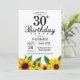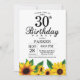 Sunflower 30th Birthday Invitation. Floral Flowers and White Background. Country Vintage Retro. Women Birthday. 12th 13th 15th 16th 18th 20th 21st 30th 40th 50th 60th 70th 80th 90th 100th, any ages. Printable Digital. For further customisation, please click the "Customise it" button and use our design tool to modify this template.