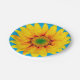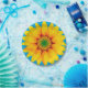 Digital Oil Painting Sunflower Artwork. A sophisticated and artistic digital painting of a yellow sunflower in vivid hues of yellow, orange and green on a turquoise blue background + your idea. How bright and cheerful for any celebration party!