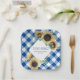 Rustic personalised plates for your couples shower, bridal shower, wedding shower or I Do BBQ feature a boarder with watercolor sunflowers and greenery on a blue gingham chequered pattern. Personalise with your names and date. To see more designs like this visit www.zazzle.com/vginvites