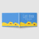 Beautiful sunflower summer wedding guest book. Yellow sunflowers wrap around the bottom of the ocean blue guest book. The font is casual, modern and white. The bride and groom names and their wedding date is included. You can easily personalise the text, it's colour and even the font. You can also change the blue background to a different colour.