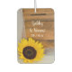 Personalise the charming Sunflower and Veil Country Wedding Air Freshener with the names of the bride and groom and marriage ceremony date to create customised party favours, save the date announcements or keepsake gifts. This casual yet classy custom rustic ranch theme wedding air freshener features a quaint floral photograph of a yellow sunflower blossom and white bridal veil with a brown barn wood background.