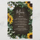 Sunflower and Daisy Rustic Wood Wedding Menu Cards