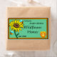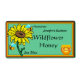 Bold Sunflower blossom with two bees flying around it and a honey pot on the opposite side.