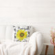 Pillow printed with original digital watercolor sunflower and watercolor leaves painting.