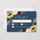 Sunflower and Navy Blue Magnolia Burgundy Wedding RSVP Card