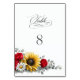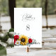 Sunflower and Red Rose Floral Wedding Table Number