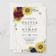 Sunflower and Roses Burgundy Red Navy Blue Wedding Invitation