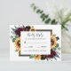 Sunflower and Roses Burgundy Red Navy Blue Wedding RSVP Card