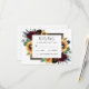 Design features elegant watercolor roses, peonies, wildflowers and sunflowers in various shades of burgundy red, navy blue and more over a wreath of eucalyptus greenery. Design also features a barn wood frame underneath the wreath. A unique font layout compliments the overall design. You can change the background colour on the front and back to the colour of your choice or leave both set to white. View the collection on this page to find matching wedding stationery products.