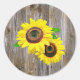 Pretty weathered wood with yellow sunflowers on it. Perfect to seal Rustic Wedding invitations or Save the Dates. Also cute for closing candy favour bags and weddings or baby showers.