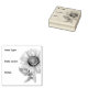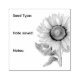 Seed saver stamp with sunflower design and custom text. Wood stamp, size 2.5 inches square, comes with or without a handle. Select an ink colour and use to stamp vegetable and flower packets. Sample text is, "seed type, date saved, and notes" and aligns to the left. Change the wording, add or remove spaces, and create a stamp for all types of seeds, or one specific variety.