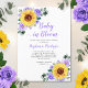 These baby shower invitations feature a modern watercolor floral design with sunflowers, purple flowers and eucalyptus foliage. Personalize the invitation wording with your own text. Matching items also available. Please visit our store.