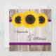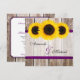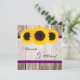 An elegant sunflower wedding invitation. Featuring rustic barn wood with purple faux ribbon and yellow sunflowers. Perfect for a country wedding, sunflower wedding, barn wedding and more! Designs are printed illustrations/graphics - NOT ACTUAL RIBBON.