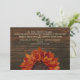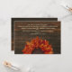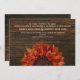 A wedding invitation featuring an image of an orange sunflower peeking from bottom over a background of dark brown barnwood. Personalise the text with details of your occasion.