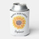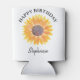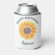 This Happy Birthday Party Can Cooler is decorated with a yellow watercolor sunflower.