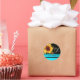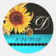SUNFLOWER BLACK WHITE AQUA BLUE TEAL MONOGRAM CLASSIC ROUND STICKER