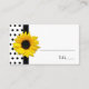 The text on these chic and classy retro black and white polka yellow sunflower wedding or special event place cards (escort cards, seating cards) is fully customisable, or just leave it as it is. The size of the card is 3.5" x 2.5" and all that is required are some placecard holders. This sunflower flower and polka dots floral placecard would work well for a variety of special occasions. Really, what you use it for is up to you. NOTE: This is a flat printed design without any raised or 3D embellishments. This is part of a themed stationery set.