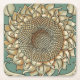 Sunflower Bloom on Blue-green Background Square Paper Coaster