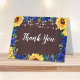Sunflower Blue Floral Border Wood Lights Wedding Thank You Card