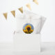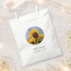 This design features sunflowers and a blue sky background. The simple white circle frames with its elegant typography is placed on top of the the rustic sunflower fields photo to create a stunning design. The yellow and blue tones of the sky and sunflowers create a natural country garden feel. Elegant wedding favour bag design with modern elements. Matching wedding invitations and other stationery items are also available.