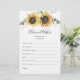 Sunflower Botanical Bridal Shower Advice Card