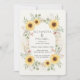 This charming wedding invitation features a soft watercolor sunflower wreath accented with delicate greenery and blush florals. Warm yellow tones and natural botanical elements create a romantic rustic aesthetic, perfect for fall, garden, or countryside weddings. The balanced floral frame adds a timeless, elegant feel ideal for couples who love nature-inspired and classic wedding styles.