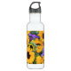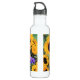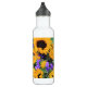 Golden sunflowers are set off by purples and greens to create a beautiful and cheerful water bottle!