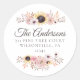 These custom printed round return address labels feature  a watercolor style illustration of a floral bouquet composed of sunflowers and other blooms in yellow, pink and brown making it perfect for late summer and early fall weddings. Use the template fields to easily personalise these with your information.
