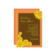 Striking invitation great for a gathering to celebrate love. Features sunflowers in typical colours, different sizes, and a tiny polka dots pattern in the centre of the flower. The colours and design make this card suitable for the Fall months. Ideal for a bride that appreciates the Autumn season and has a taste for sunflowers. The elegant and playful design will set the tone for a cosy and friendly event. Add your own wording.