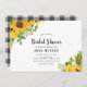 Bridal Shower invitation featuring watercolor sunflowers and classic buffalo plaid backside. These elegant invitations are perfect for a classy bridal shower or champagne brunch for a "Brunch and bubbly". Customise with your information for the bride to be. Click "click to customise further" to change the font style, size, or colour.