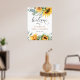 This is a modern and rustic sunflower themed bridal shower welcome sign poster to celebrate the bride-to-be! Using a design of country sunflower florals and eucalyptus leaves, edit all of the text as required using the provided template and celebrate the bride’s upcoming nuptials in boho rustic style.