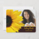 Sunflower flower brown and yellow photo graduation invitation. A cheerful and sunny sunflower photo grad party invitation. Bold yellow sunflower paired with simple brown background for her. Great choice for a country girl.