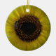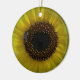 A macro shot of a bumble bee gathering pollen from a sunflower