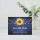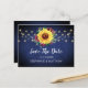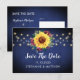 Sunflower Burgundy Rose Lights Navy Blue Wedding Announcement Postcard