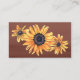 Business card with rich brown watercolor background and large sunflower. Yellow text coordinates with the colour of the flower. All text is editable.