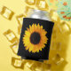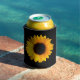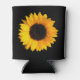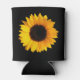 Pretty floral can cooler with graphics of a big sunflower bloom, against a black background. Customise to add your own text.