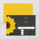 This cheerful sunflower chalkboard style wedding invitation features a hand-drawn chalky sunflower with bright, colourful petals in shades of gold at the left border on the front of the card - the back of the card is a customisable solid colour, currently gold to coordinate with the flower - by katz_d_zynes