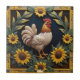 "brown chicken on black", "farm egg laying hen", "yellow sunflower flowers", "summer sunflowers floral", "farming fowl poultry", "rural rustic ceramic tile", "farmhouse countryside country", "green leafy leaves", "cute chickens", "rooster mum dad gift"