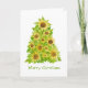 Sunflower Christmas Card is designed from a watercolor painting of sunflowers in the shape of a Christmas tree by Julia Morrill